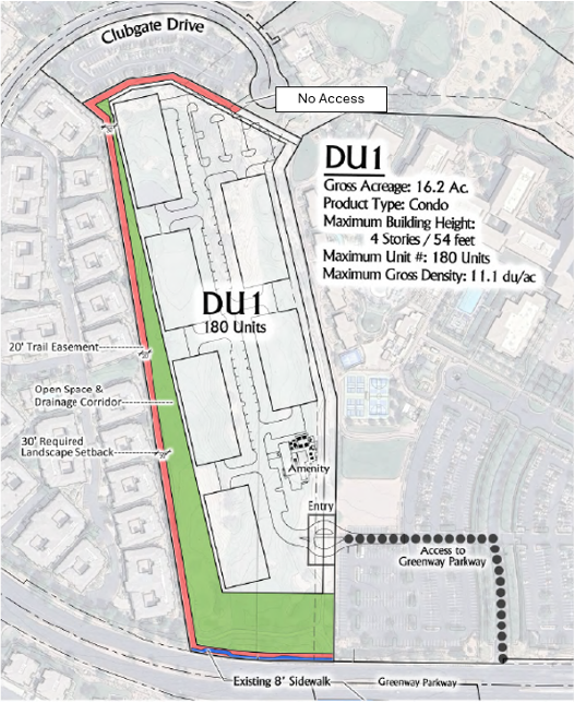 • Elimination of the previously proposed Clubgate Drive access driveway